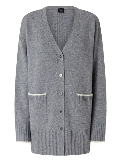 V-neck Knitwear Cardigan With Ribbed Cuffs And Hem In Neutral