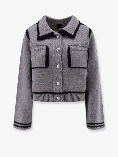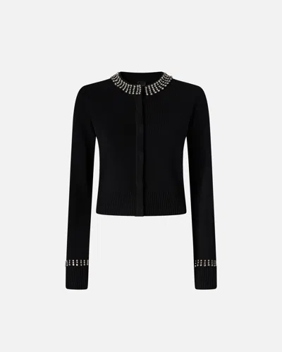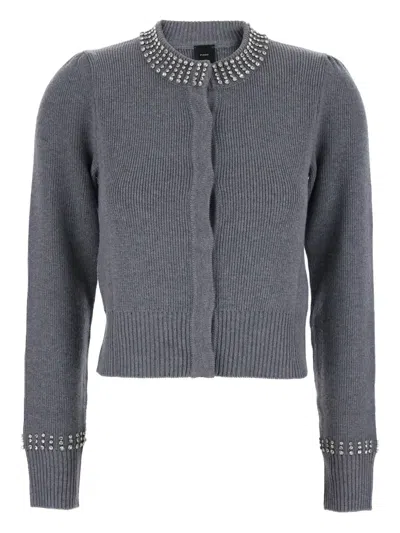 Grey Cardigan With Crystal Embellishments And Logo Patch On The Back In Cashmere Woman In Gray