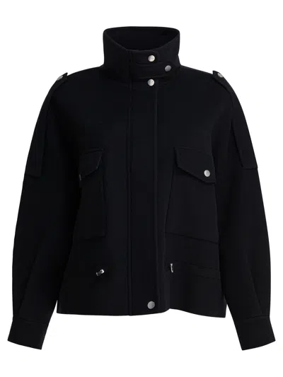 Carbonara Black Cape With High Neck And Front Button Closure In Fabric Woman In Multi