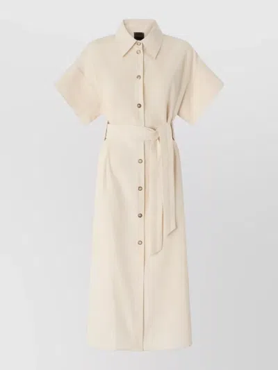Cotton Short Sleeve Belted Midi Shirt Dress In Pink