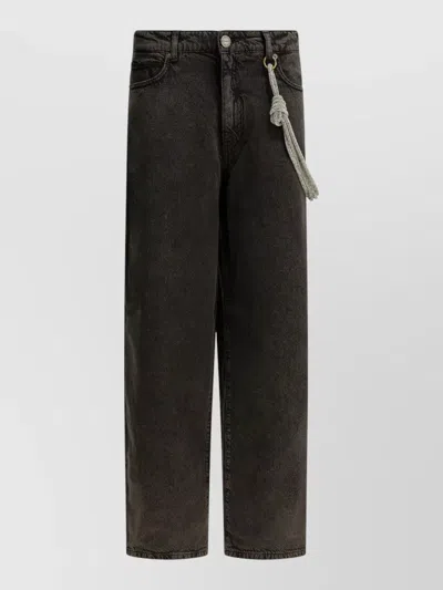 Jeans Trousers Belt Loops Rope Detail Pockets In Brown