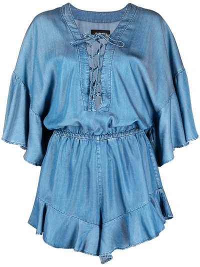 荷叶边饰系带青年布连体短裤