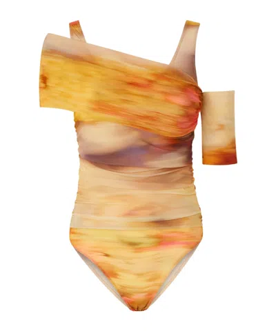 Strapless Jumpsuit In Multi. Beige/pink