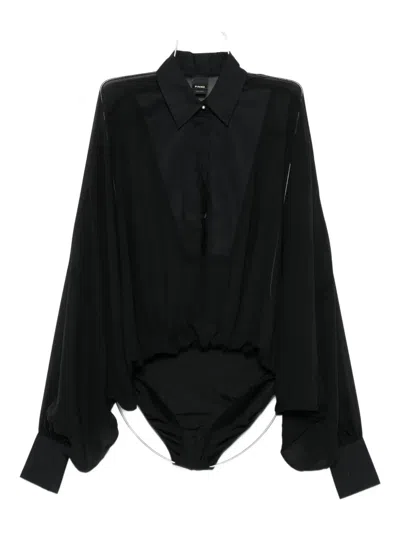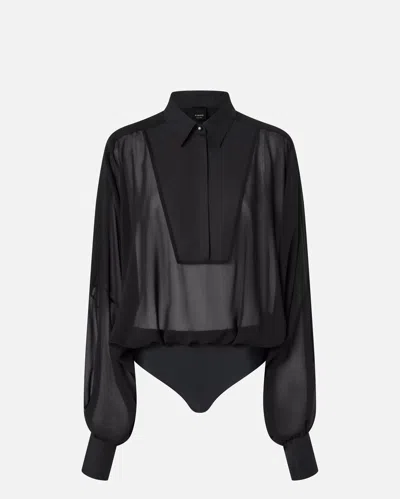 Chiffon And Poplin Bodysuit With Wide Sleeves In Black