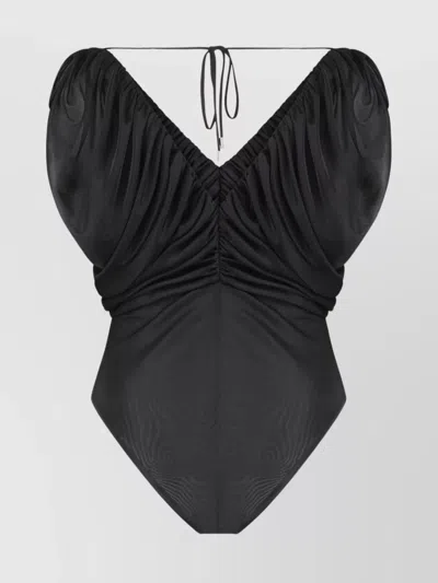 Gathered Halter Neck Bodysuit With Ruched Detailing In Black