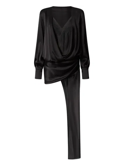 Zipped Crepe V-neck Minidress In Black