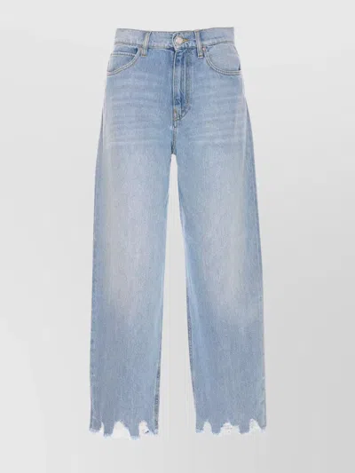 Wide Frayed Hem Trousers With 5 Pockets In Blue