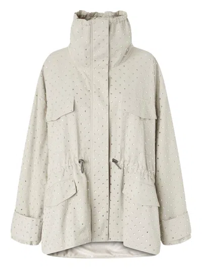 Parka Cloutée À Strass In Neutral