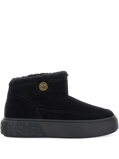 Chunky Platform Black Leather Boots With Decorative Buckle