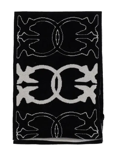 Scarf With Jacquard Love Birds Logo In Black