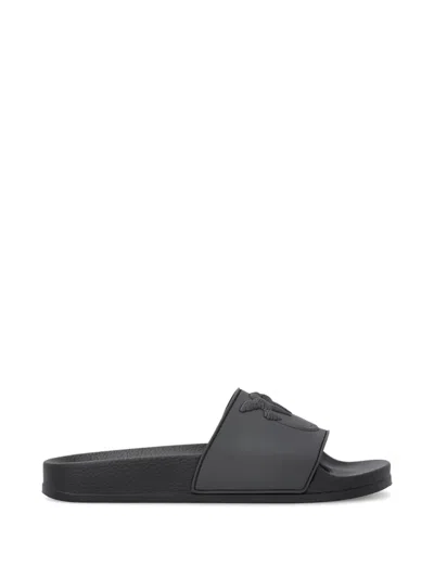 Fiona Black Slides With Chunky Design And Love Birds Logo Plaque In Leather Woman