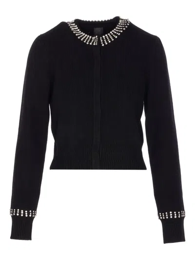 Cropped Sweater With Sequins And Crystals In Black