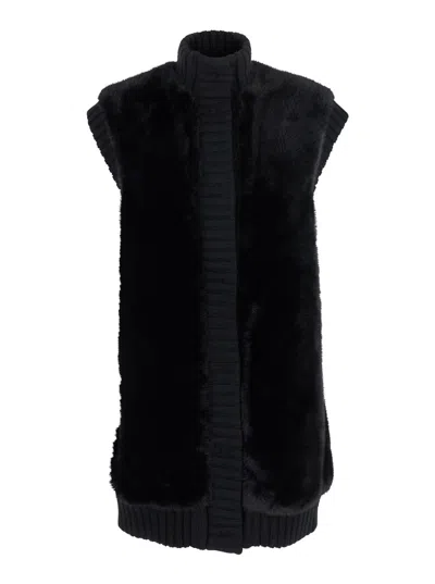 Genovese Long Faux Fur Vest In Black