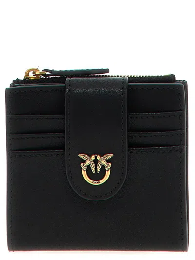 Flat Purse Mini Black Mini Bag With Love Birds Logo Plate On The Front In Leather Woman