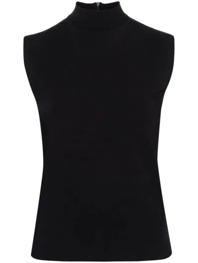 Mock-neck Jersey Tank Top In N Nero