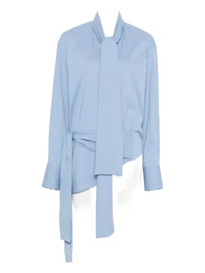 系带领裹身式真丝衬衫