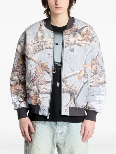 Rhinestone Embellished Camo Print Cotton Bomber Jacket In Multi