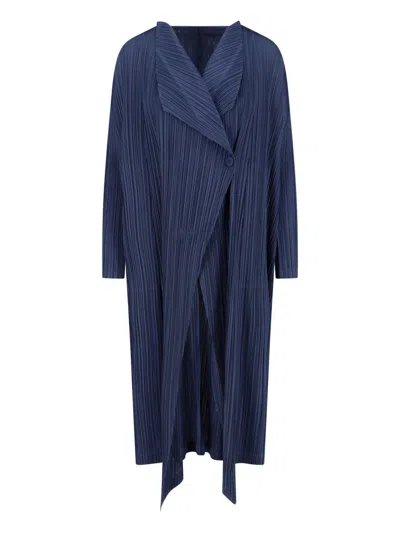 Navy Pleated Coat In Blue