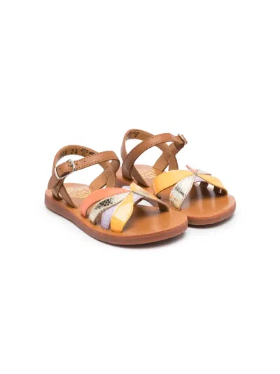Kids' Plagette Oto Leather Sandals In Laminato Holo Nacre-powder