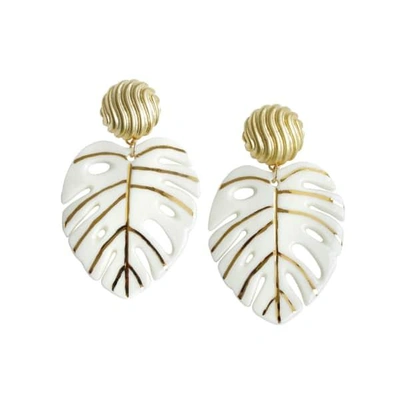 Porcelain Moonlight Rose & Triple Leaves Drop Earrings