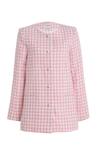 Leon Single-breasted Pinstripe Linen Blazer In Neutral
