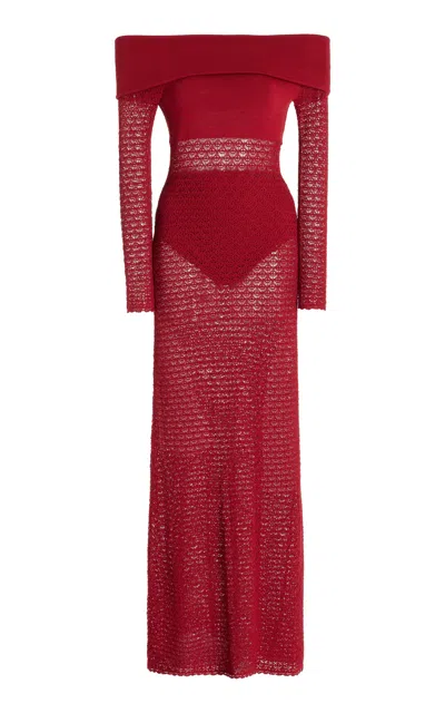 Exclusive Romy Knit Off-the-shoulder Maxi Dress In Red