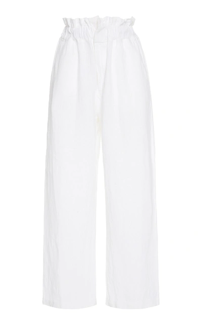 Exclusive Ducky Oversized Paperbag-waist Linen Pants In Ivory
