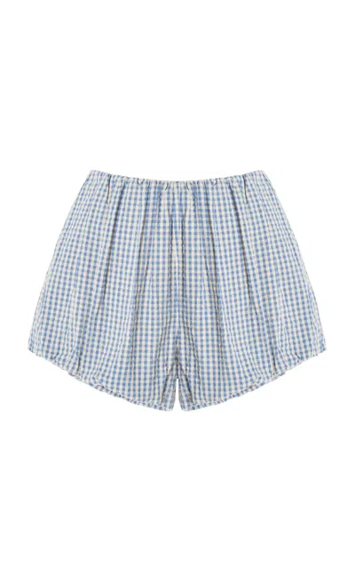 Aurelia Gingham Cotton Bloomer Shorts In Blue