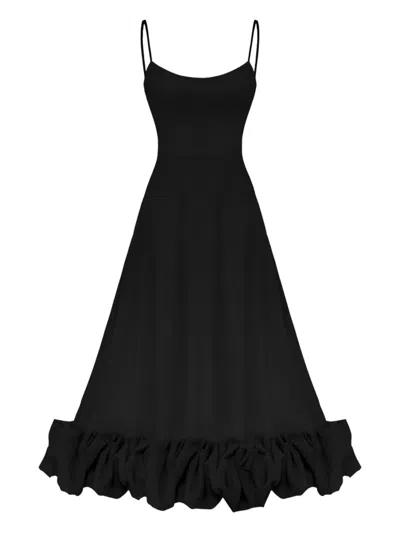垂坠紧胸衣式蓬松下摆中长连衣裙