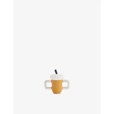 Mens Silver Brown Iced Coffee Sterling-silver Enamelled Charm In Yellow