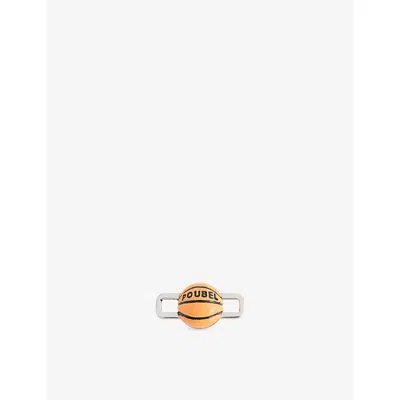 Mens Orange Basketball Rhodium-plated Sterling-silver Enamelled Charm