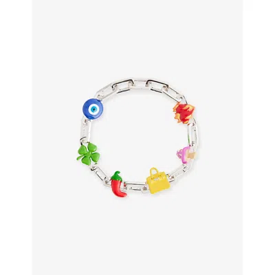 Mens Grn Ble Org Pnk Gry Colton Rhodium-plated Sterling-silver Enamelled Charm Set In Multi
