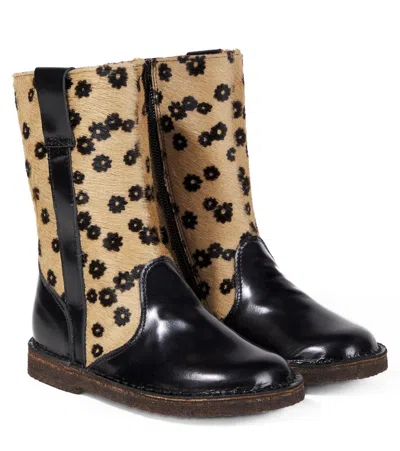 Kids' Printed Calf Hair And Suede Sneakers In Brown