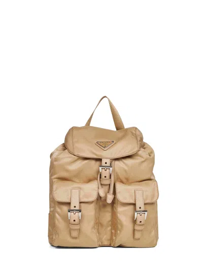 Camel Prada Re-edition 1978 Small Backpack In Brown