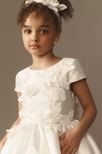 Margot 3d Flower Luxe Pearl Satin Flower Girl Dress