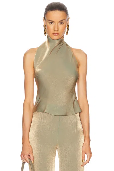 Low Back Halter Top In Metallic Pink