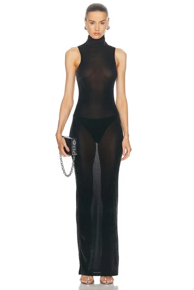 Velvet Mesh Turtleneck Maxi Dress In Obsidian