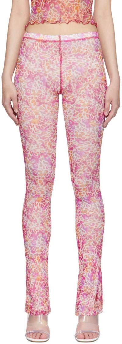 Pink Nylon Lounge Pants In Lo Leopard Orchids