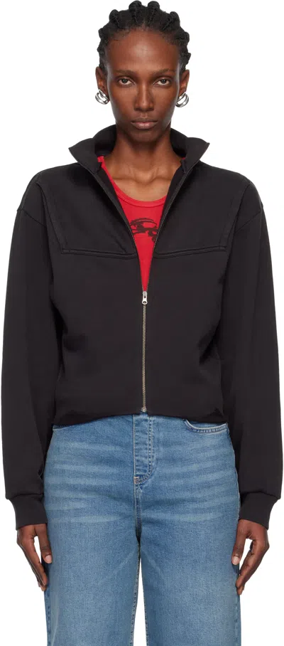 Black Upcycled Upside Down Zip Up Sweatshirt