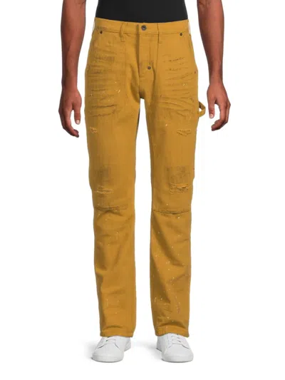 Men's Splatter Paint Distressed Jeans In Light Brown