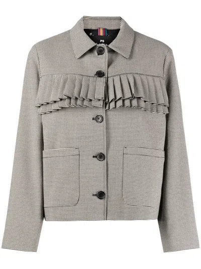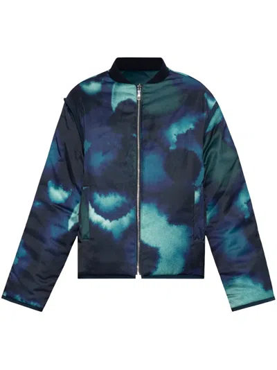 Denim Cotton-blend Cropped Asymmetric Jacket With Topstitching Blue