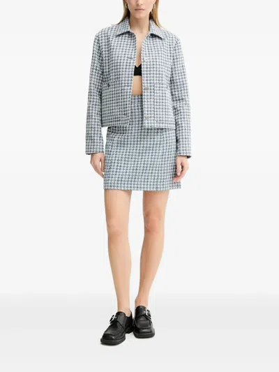 千鸟格纹纽扣开合夹克