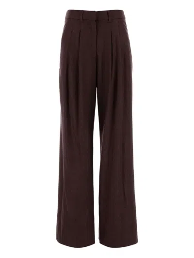 Tailored Wide-leg Wool Blend Trousers In Brown