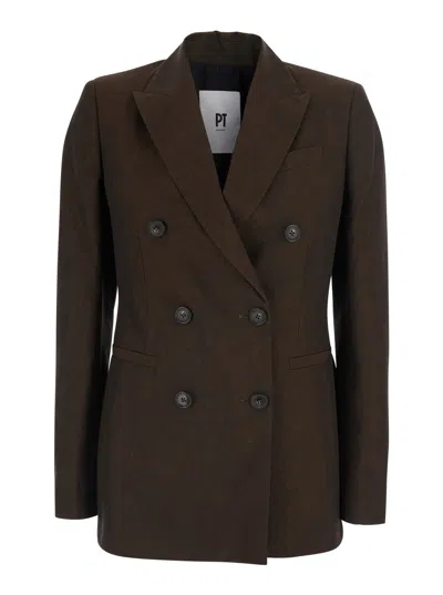 Romy Linen And Cotton Fine Plain Weave Brown Light Jacket With Front Closure And Side Pockets In Ble In Burgundy