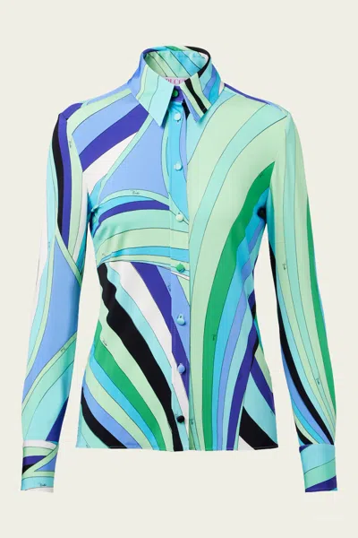 Iride-print Jersey Satin Shirt In Verde Lilla In Blue