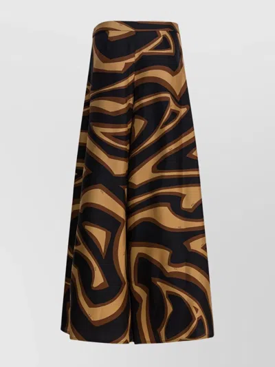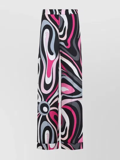 Labirinto Print Silk Wide Pants Trousers Black In Multi