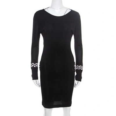 Pre-owned Black Knit Crystal Embellished Backless Sheath Dress S