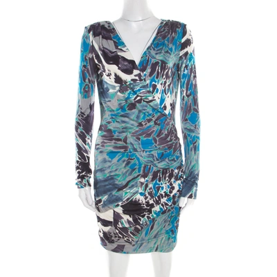 Pre-owned Multicolor Print Wool Blend Knit Ruched Dress M
