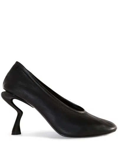 圆头皮质高跟鞋