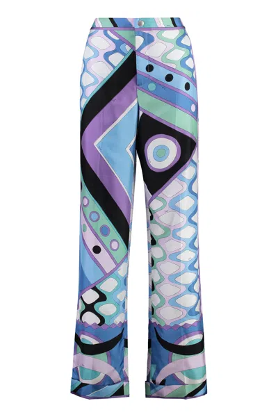 Printed Silk Pants With Roll-up Cuffs In Blue